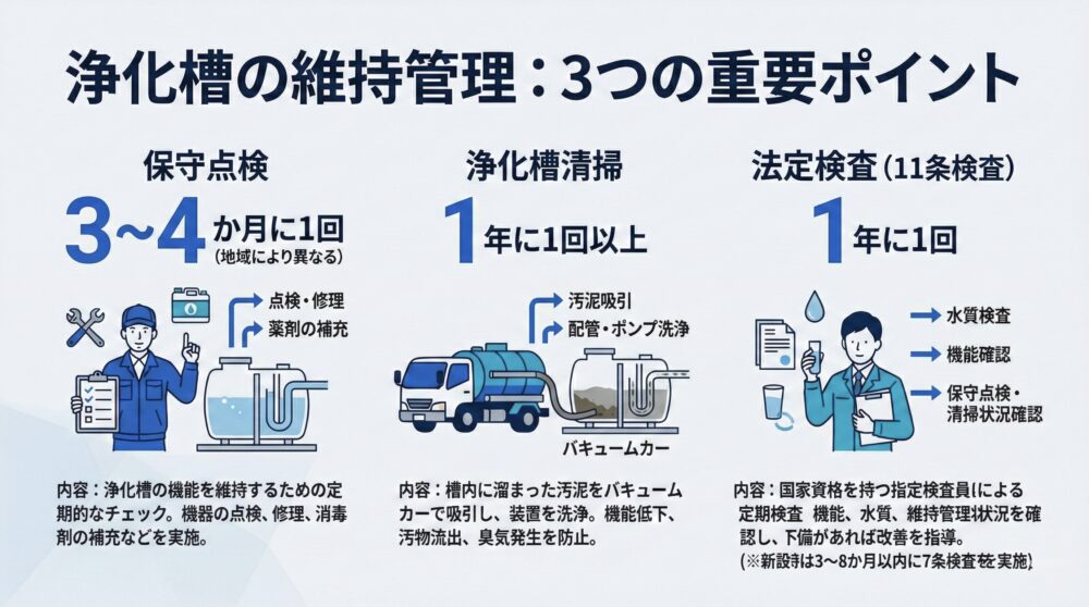浄化槽利用者が知っておくべきこと3選について、以下で解説します。